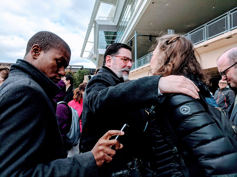 Still, following his remarks, Peduto was warmly embraced by several members of the crowd.