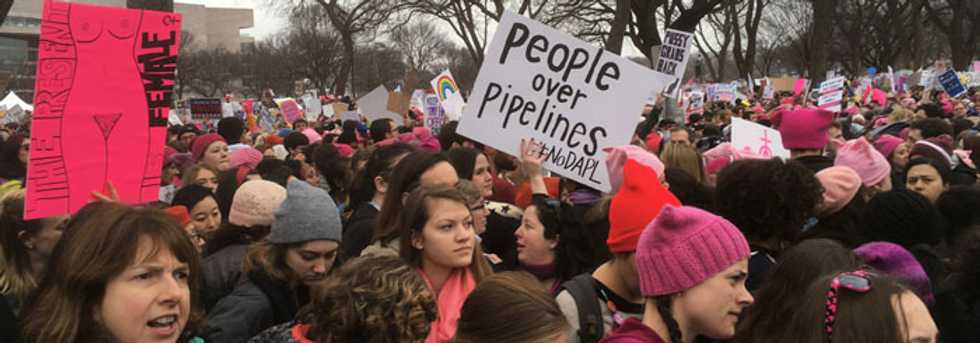 To be sure, the predominant theme at Women's Marches big and small across the nation and globe Saturday was that "this pussy bites back" and "love trumps hate." But a noticeable subset of marchers also called for strong climate science, a stand against environmental rollbacks, and better environmental education.