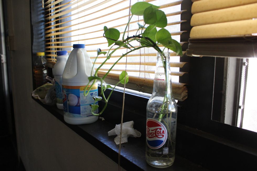 The windowsill at Cheryl Reed's apartment at Trent Court, which she has permanently vacated. (Credit: Lewis Raven Wallace)