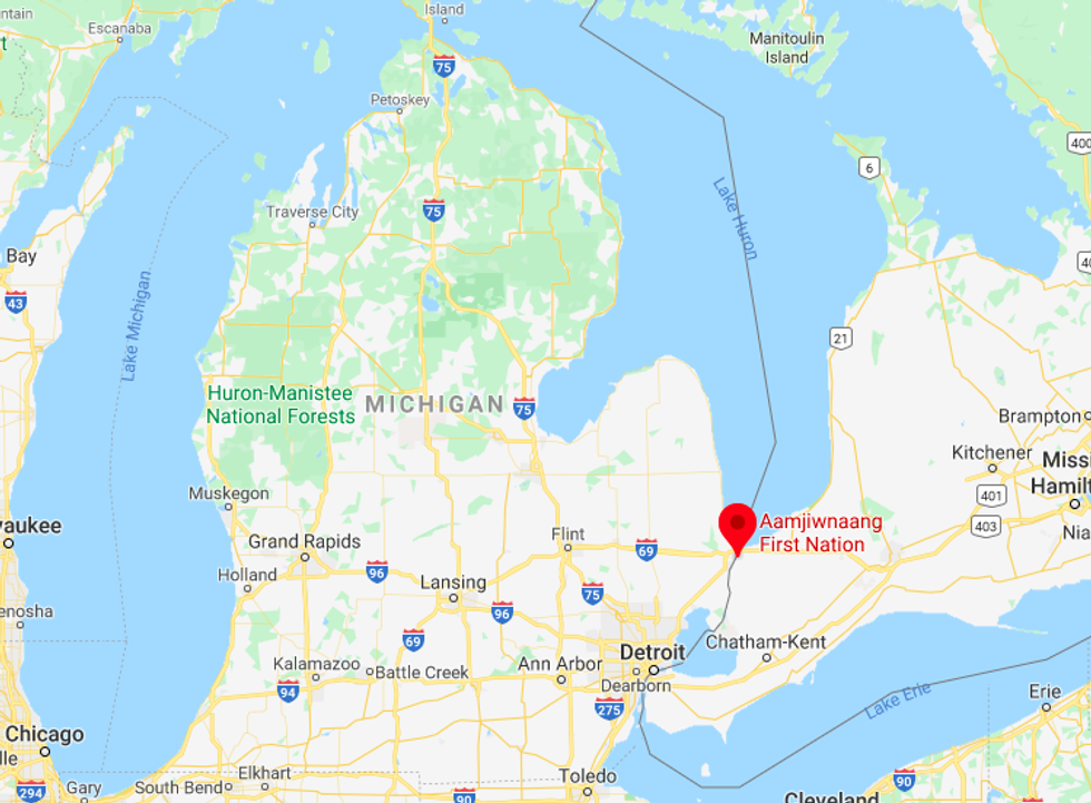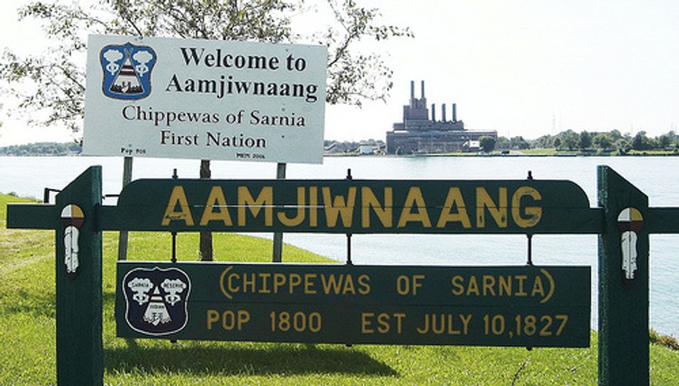 About 850 Anishinaabe live on the Aamjiwnaang reservation just east of Michigan's thumb across the St. Clair River near Sarnia, Ontario. The area has earned its ominous nickname, Chemical Valley, because it is home to 62 industrial facilities – 40 percent of Canada's chemical industry. Chemicals such as benzene, cadmium, formaldehyde and lead permeate the reservation.