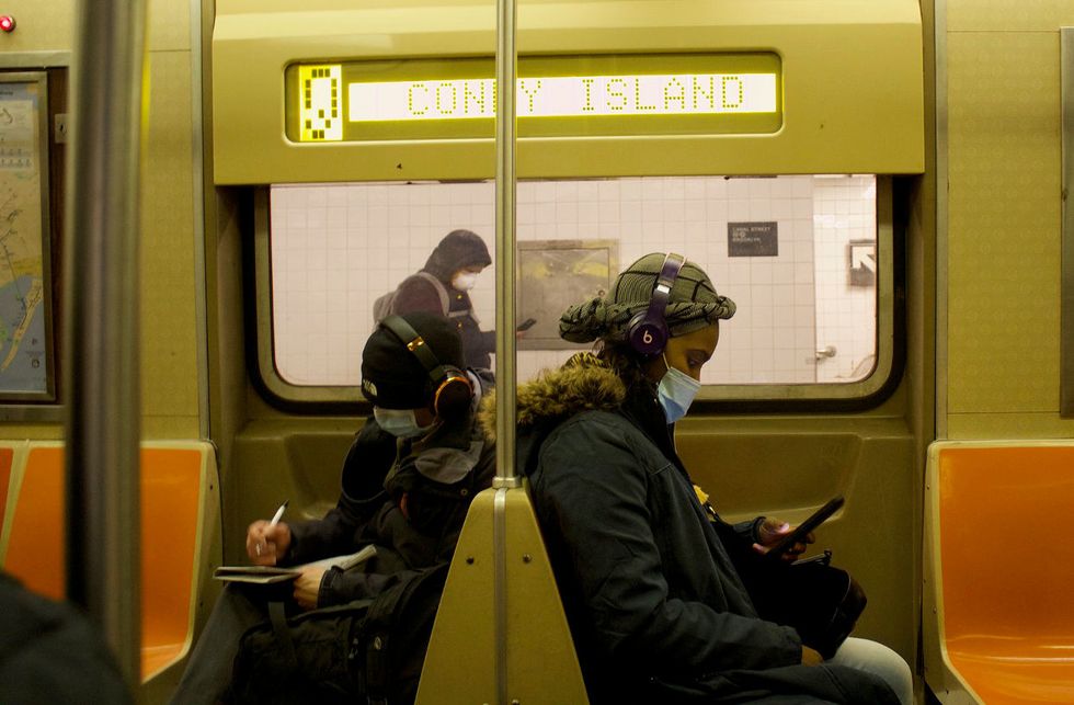 NYC subway riders on March 31, 2020. (Credit: Pamela Drew/flickr)
