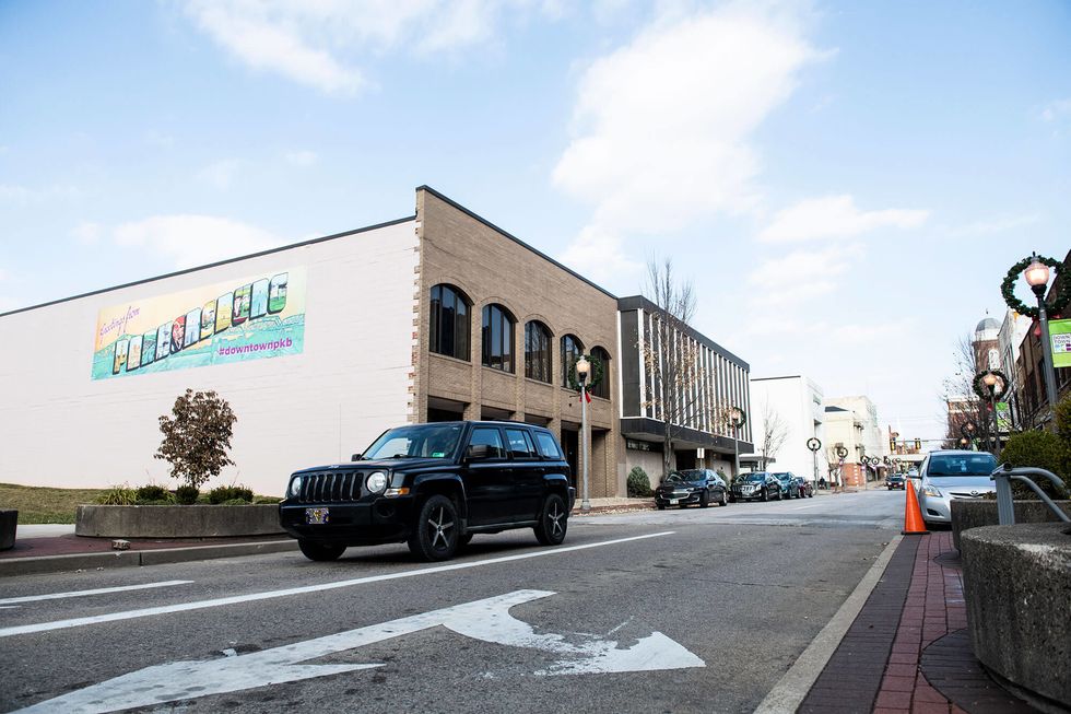 A vehicle slows down at the corner of Fourth and Market streets in Parkersburg, West Virginia, on Nov. 20, 2019. (Credit: Lexi Browning/100 Days in Appalachia)