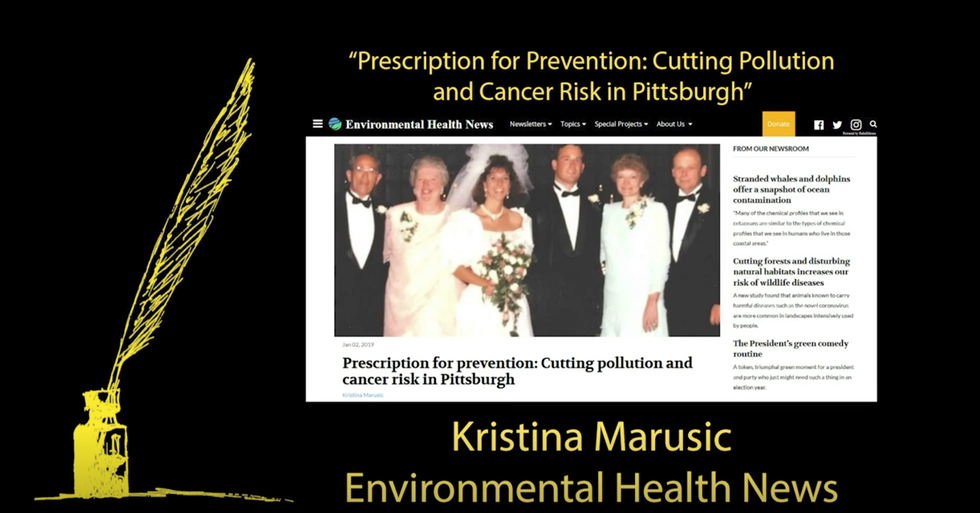 Kristina Marusic, EHN's Pittsburgh reporter, won two 2020 Golden Quill Awards for her reporting on air pollution and cancer in Western Pennsylvania.