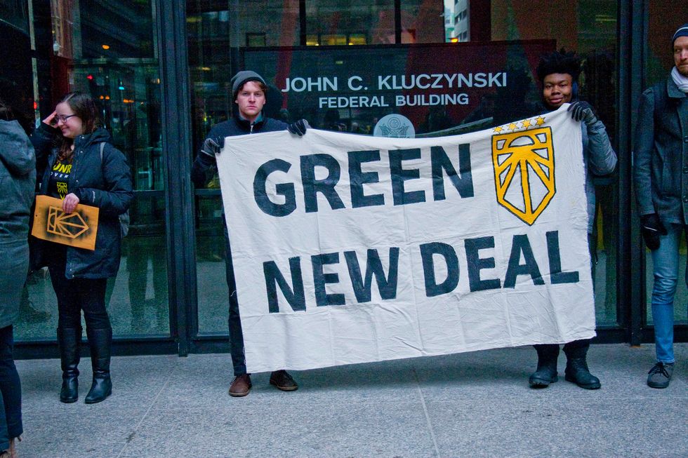 Chicago Sunrise Movement rallies for a Green New Deal in Chicago, Illinois. (Credit: Charles Edward Miller/flickr)