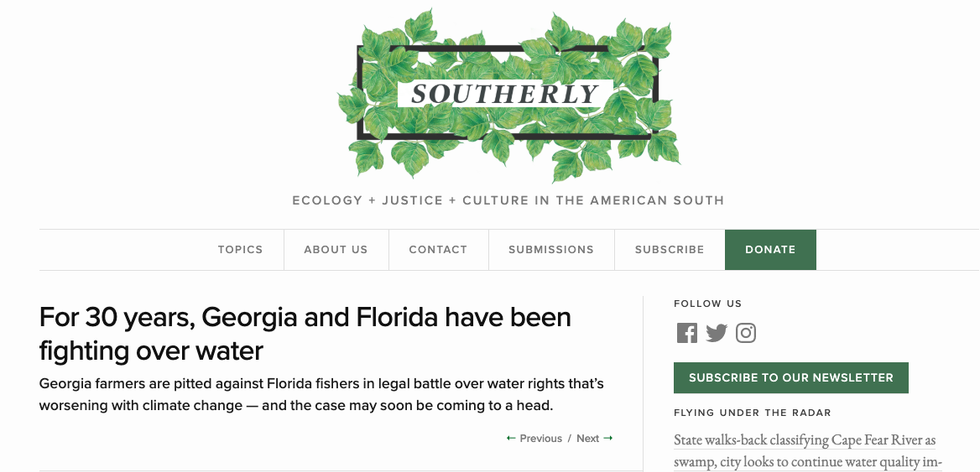 A collection of long-reads on environmental issues in the American South. The year-old startup is the work of Lyndsey Gilpin, who seeks to fill in the gaps in a region vastly underserved in environmental reporting and storytelling.
