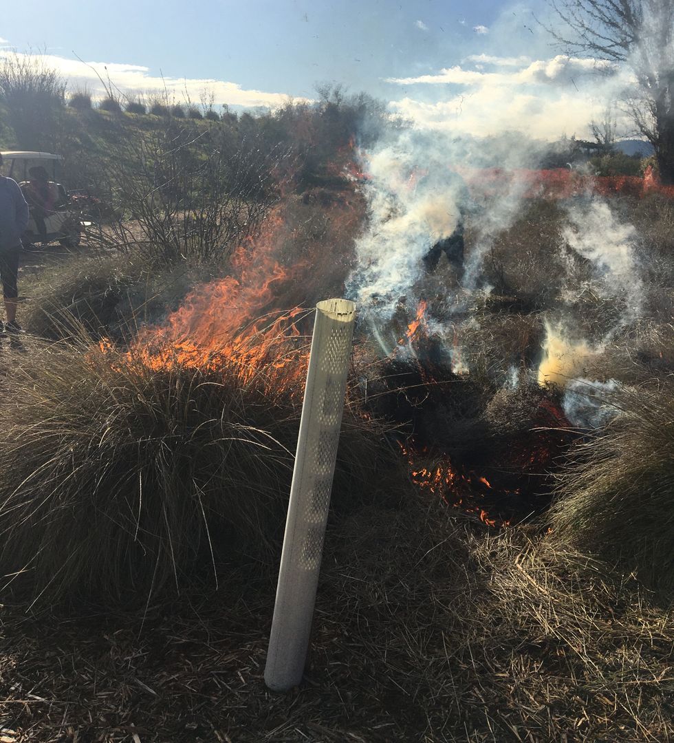 Hoy el fuego es lento, tenemos que convencerlo de que esté en el pasto de venado. Las plantas que quememos permitirán que la comunidad nativa local tenga material de cestería. Sin fuego y otros vigilantes cuidadosos, las plantas de cestería son inutilizables. Pueden volverse escasos, torcidos o inflexibles. Arbustos ardientes como el árbol de Judea, arándano y avellana hacen que los brotes largos, rectos y flexibles sean perfectos para tejer. La hierva de venado produce más de sus deseables tallos de flores.
