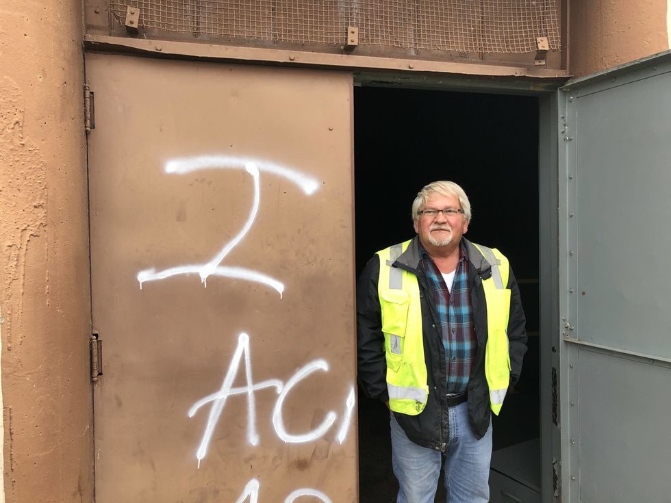 Mike Pemberton pictured outside the entrance of Pump Station Number Six in Ironton, Ohio. (Credit: Liam Niemeyer, Ohio Valley ReSource)
