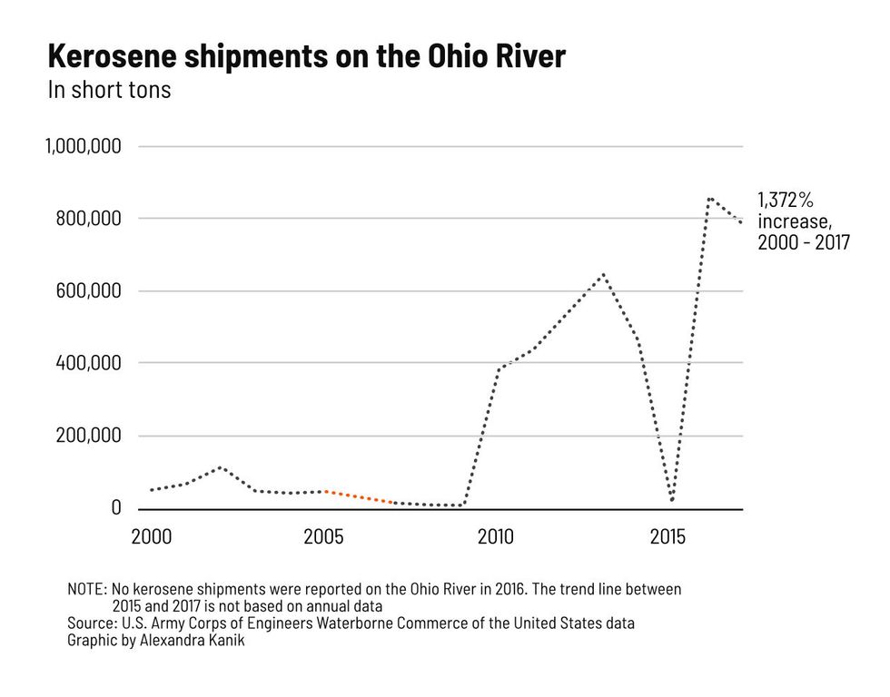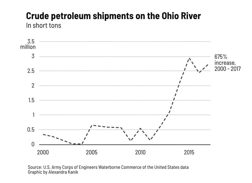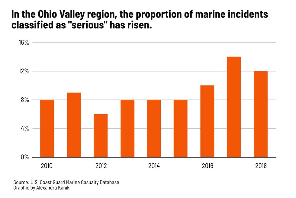 Nearly 3,400 marine incidents occurred in a nine-year period in the Ohio watershed. In 2010, about 8 percent were serious. By 2018, serious incidents accounted for 12 percent.