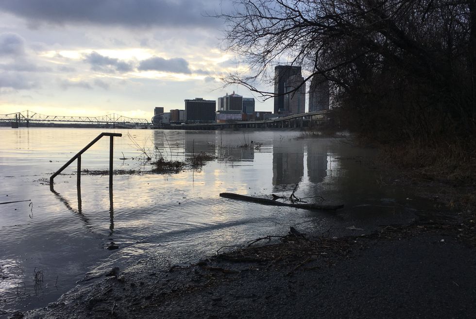 The Ohio River, during high water level, upstream of downtown Louisville on Feb. 15, 2018. (Credit: Alexandra Kanik/KyCIR)