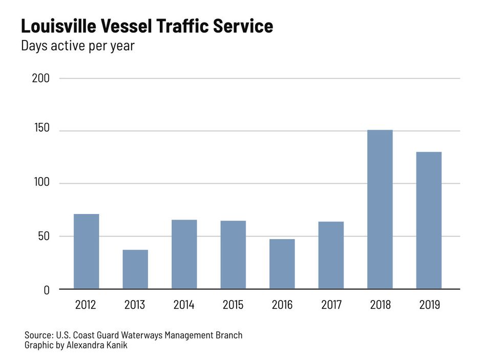 Louisville's section of the Ohio River is one of only 12 places in the country with a Vessel Traffic Service — essentially an escort system to help vessels navigate dangerous or congested stretches of river. It is the only inland traffic service and the only one that operates solely during times of high water.