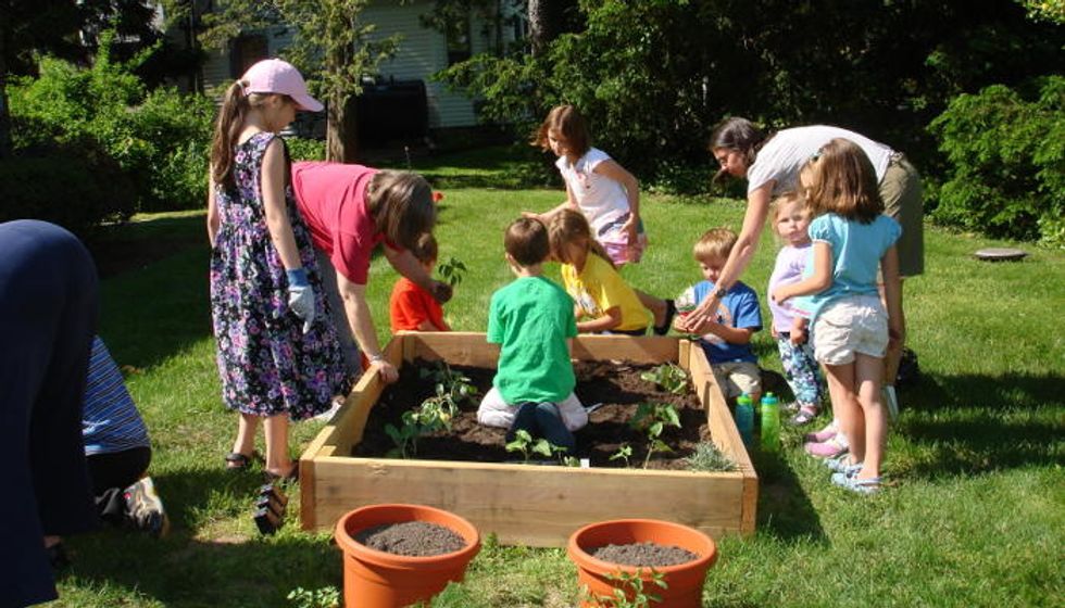 Young readers plant a garden in front of the Darien Library in Connecticut. (Credit: Darien Library/flickr)