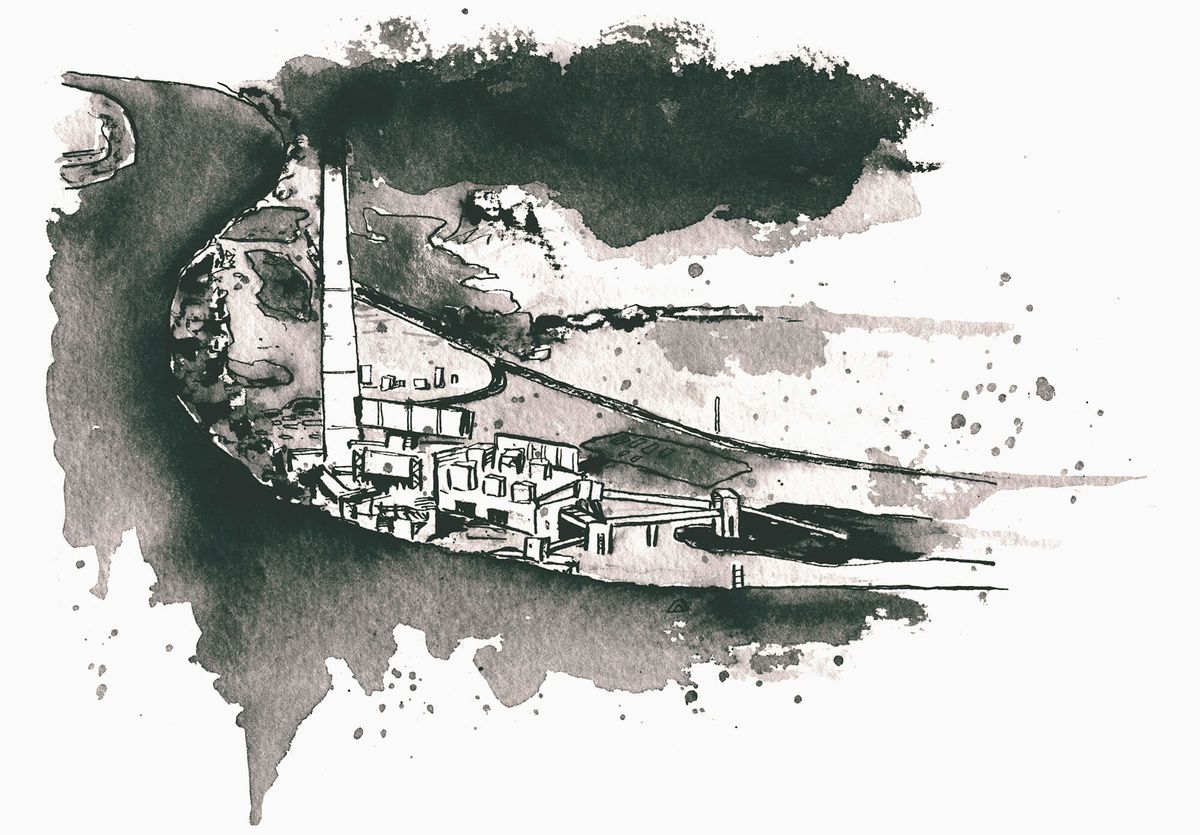 Illustration of the R.E. Burger power plant by David Wilson/Belt Magazine.