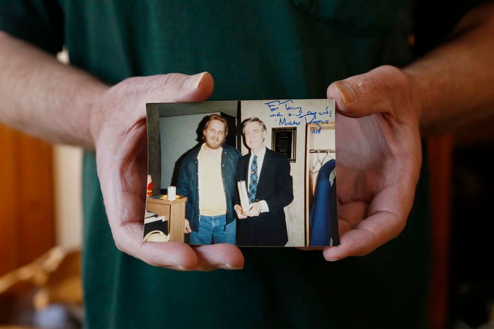 Saw Mill Run resident Anthony Wolkiewicz holds a photo that was taken of him with Fred Rogers of Mister Rogers' Neighborhood while working at WQED in 1977. (Credit: Ryan Loew/PublicSource)In July, about 40 concerned citizens from Overbrook showed up for a community meeting to hear what local leaders plan to do about Saw Mill Run.