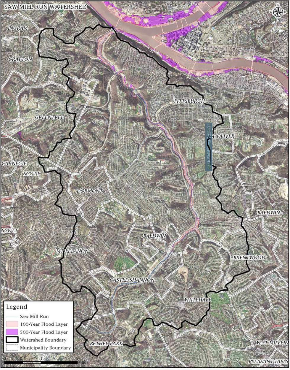 A map of the Saw Mill Run Watershed from the U.S. Army Corps of Engineers.