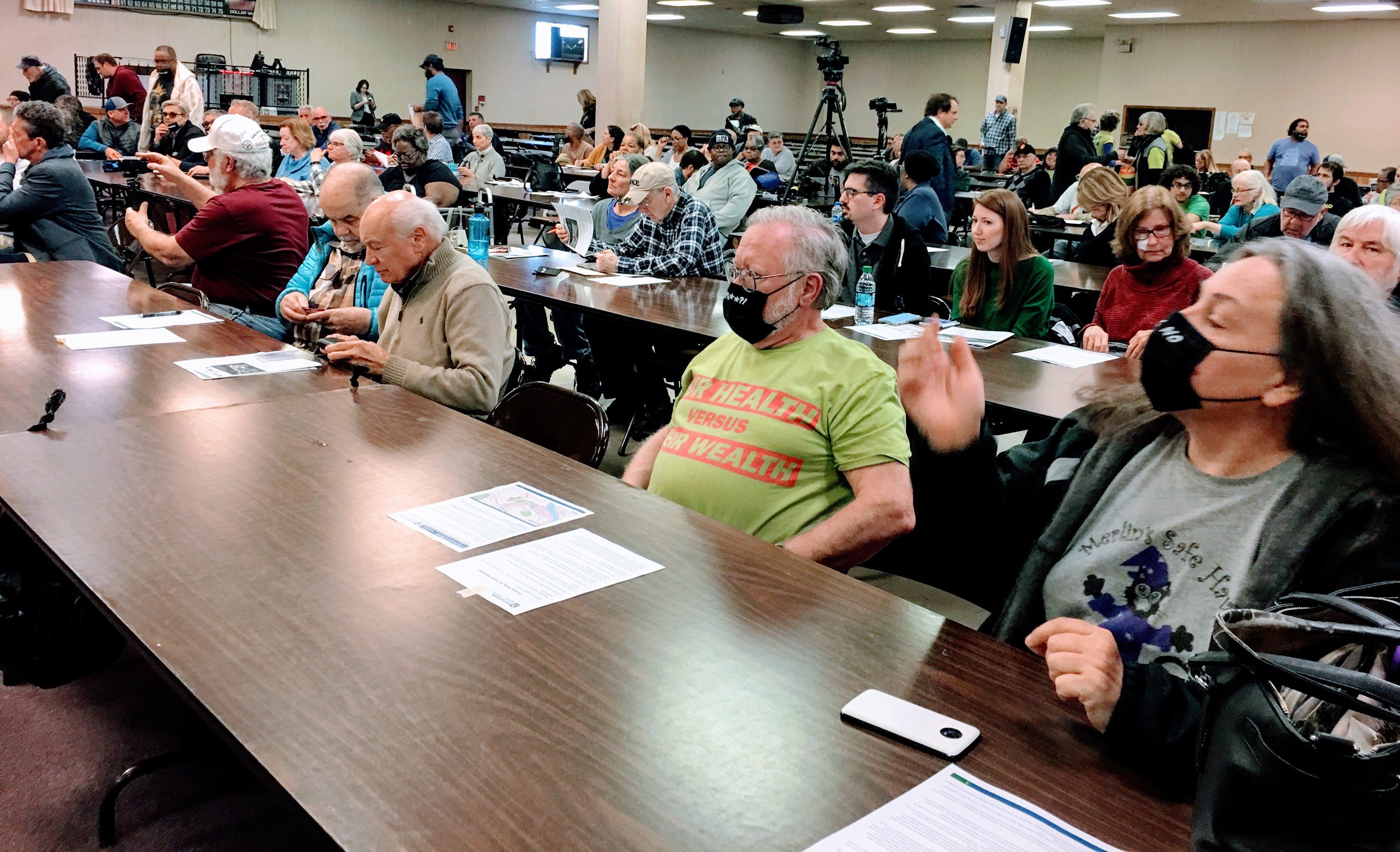 Heckling from the audience was frequent throughout a brief PowerPoint presentation from Merrion spokesperson Ryan Davis, which included statements about being a family company that prioritizes safety above all else, a slide emphasizing Merion's experience operating fracking wells in other urban areas, and a review of the company's plans to mitigate perceived safety concerns (video below).