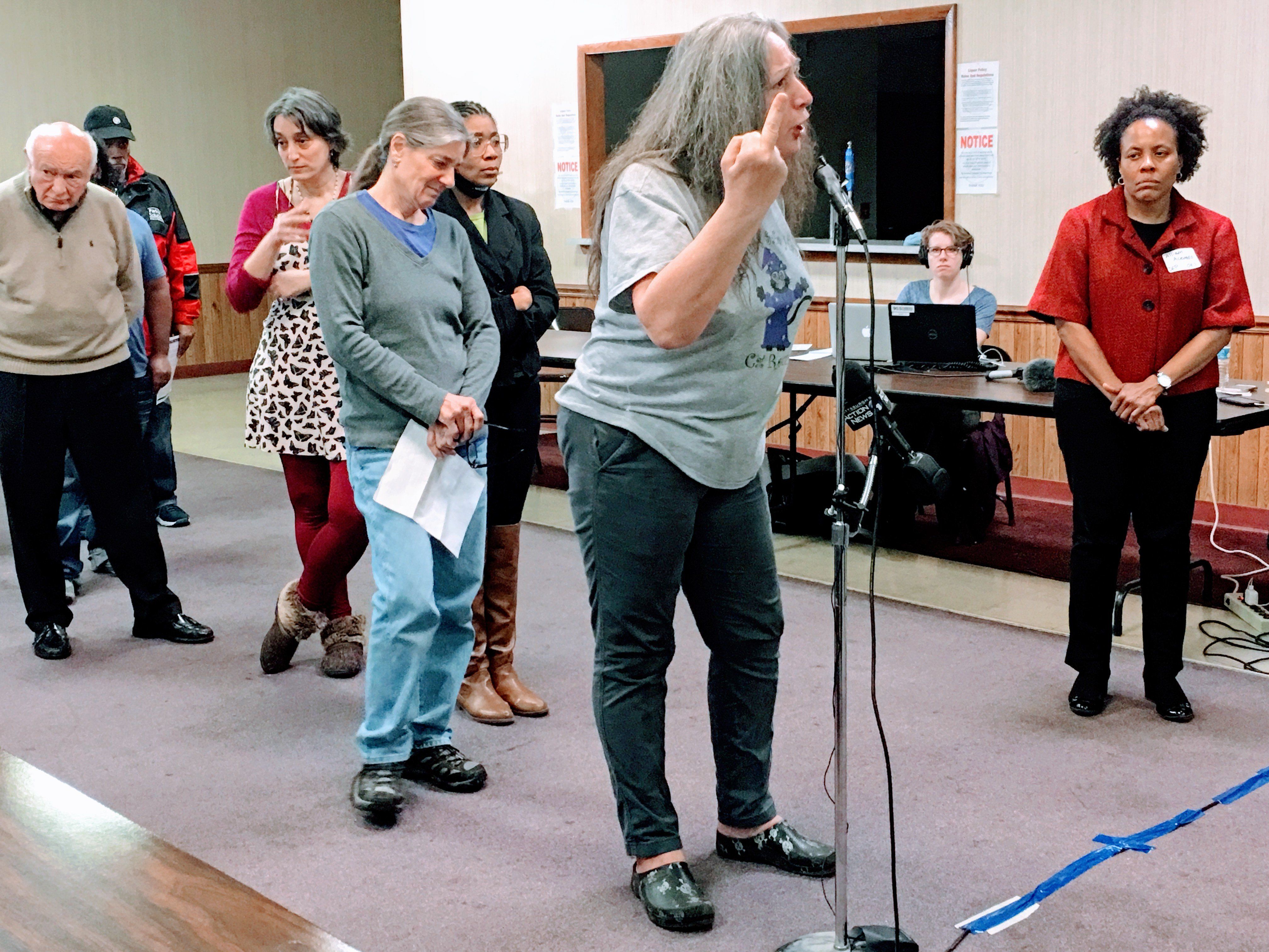 Those communities include designated "Environmental Justice Areas," or census tracts where 20 percent or more individuals live in poverty, and/or 30 percent or more of the population is minority. Several of the residents who spoke pointed out that the racial makeup of the mostly-white panel did not mirror the racial makeup of the community members in the room, about a quarter of whom were people of color.