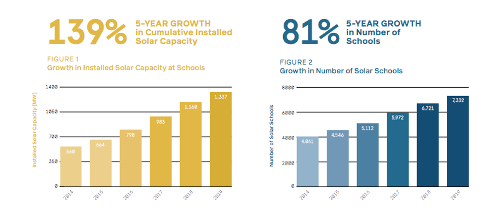 The report, which is the third edition and uses publicly available data from 2014 to 2019 on school solar use, finds that solar trends at schools mirror those more broadly in the country, and that bolstered solar energy at schools is offering not only clean power but cost savings and educational opportunities.