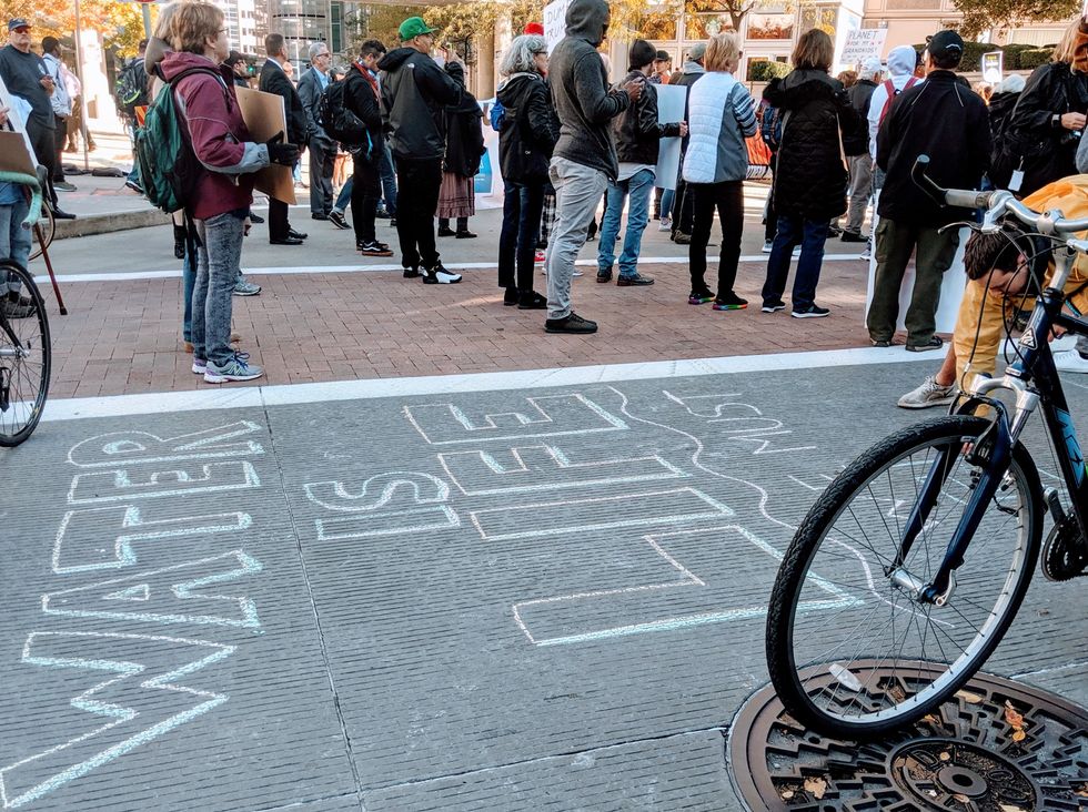 White Stack said that she and other members of the USW were there to protest corruption, and the harm the Trump administration has done to unions and the environment. She pointed to the union's partnership with the Sierra Club through the Blue Green Alliance as proof that there's not an inherent divide between unions and environmental protections.