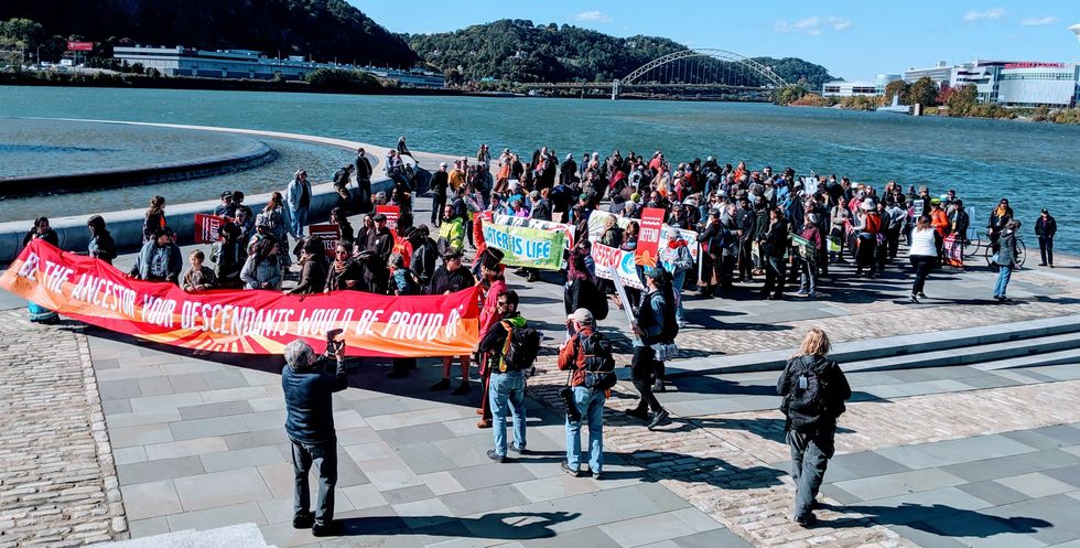 The water ceremony calls attention to the planned petrochemical buildout in the Pittsburgh region and the threat it poses to local waterways. If the Shell ethane cracker in Beaver County becomes operational—it's currently still under construction—the plant will convert a massive volume of natural gas and liquids into 1.8 million tons of ethylene every year for use in plastics manufacturing.