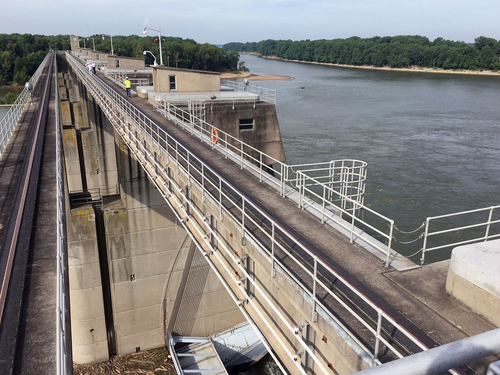 The John T. Myers Lock and Dam. ORSANCO lists seven species that shouldn't be eaten more than once a month from the John T. Myers Locks and Dam in southern Indiana to where the river empties into the Mississippi River due to mercury concerns. (Credit: Louisville District, U.S. Army Corps of Engineers)